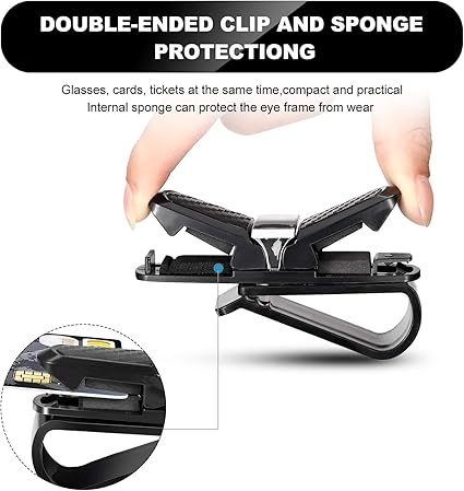 Built-In Sponge Protection: This visor sunglasses holder is equipped with a built-in sponge protective layer, which can cushion and absorb shocks during vehicle bumps to prevent items from being damaged and avoid scratches on the surface of clamped objects, providing thoughtful protection for items like glasses and cards.