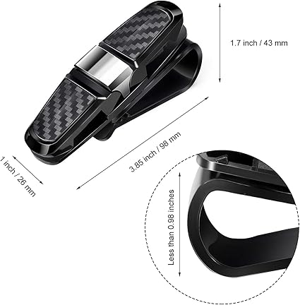 Applications: This car glasses holder is suitable for sun visors of most vehicle models such as cars, trucks, and SUVs, compatible with sun visors with a thickness of less than 0.98 inches/2.5 cm, especially suitable for fixing thick-frame glasses and sunglasses.