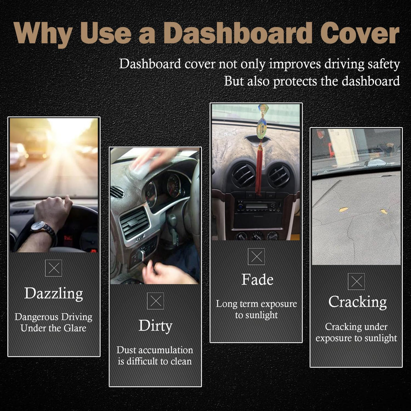 Safety: This dash cover protects the dashboard surface from ultraviolet rays that can cause cracks and warping. It can also cover blemishes and imperfections of old dashboard. Car dashboard cover also helps reduce hazardous windshield glare, blocks dirt and dust, Improve driving safety.