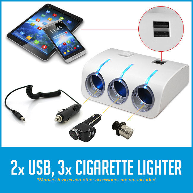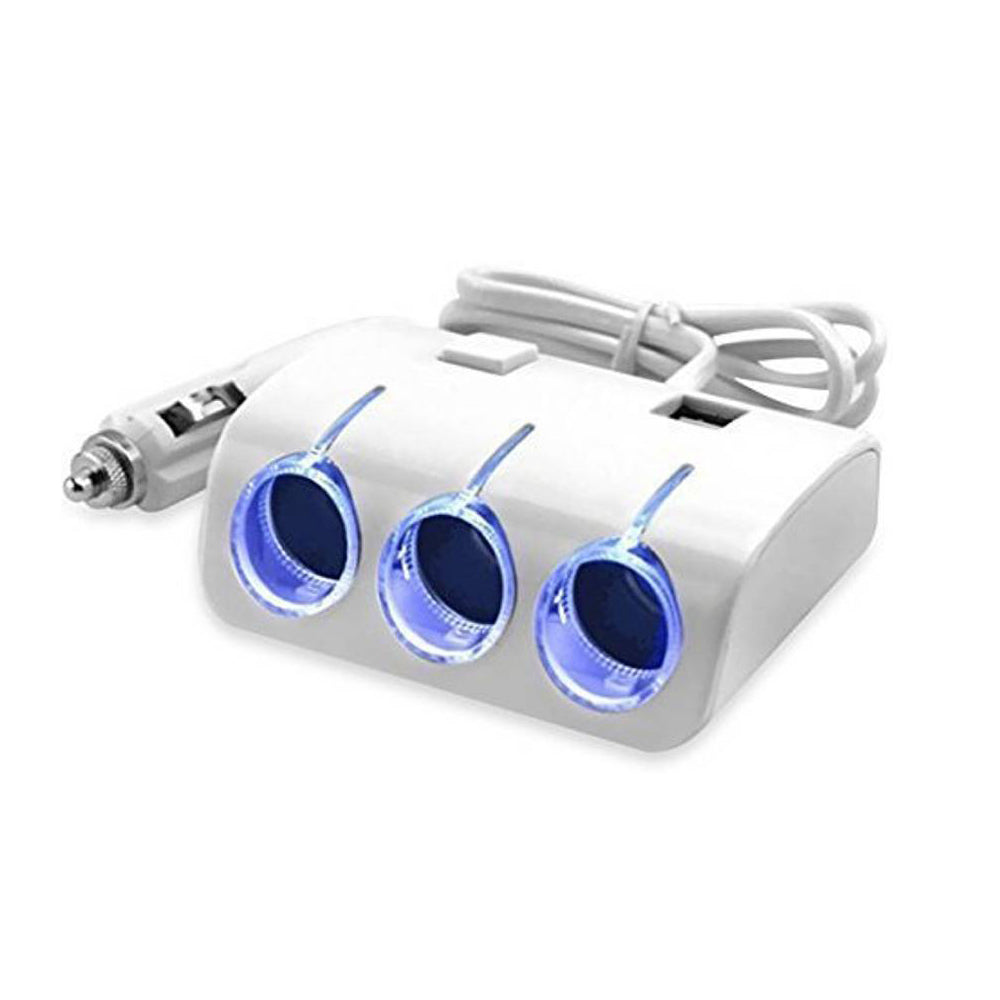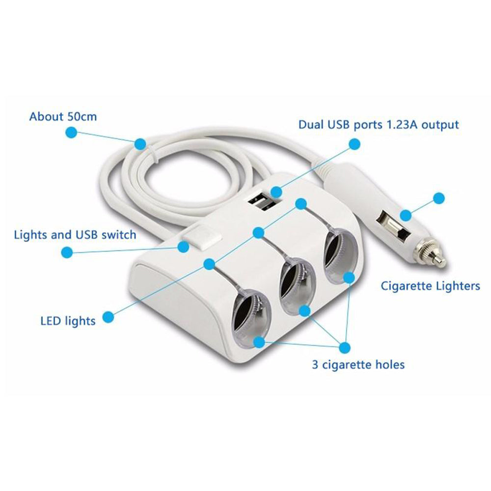 3 way car cigarette lighter spliter with 2 usb port