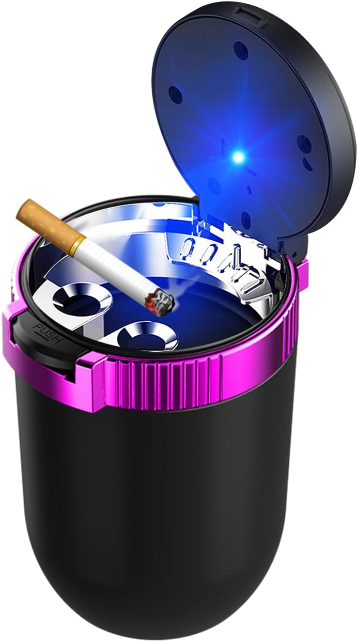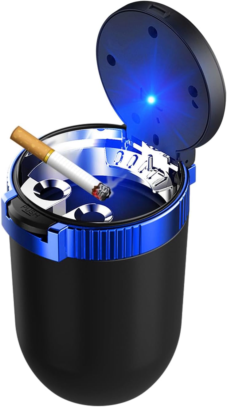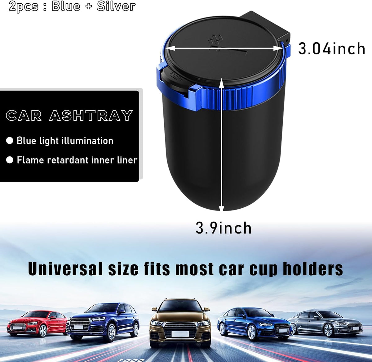 Practical LED Light Design : Mini car ashtray with blue LED light provides visibility at night, easy to find the ashtray, prevents ash from flying to keep the car clean and tidy, prevents smoke from messing up to keep the air fresh.