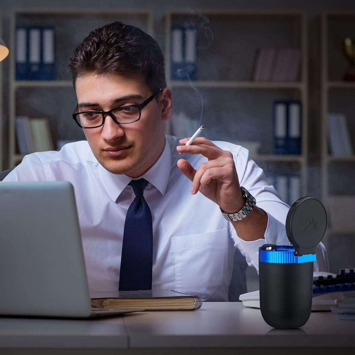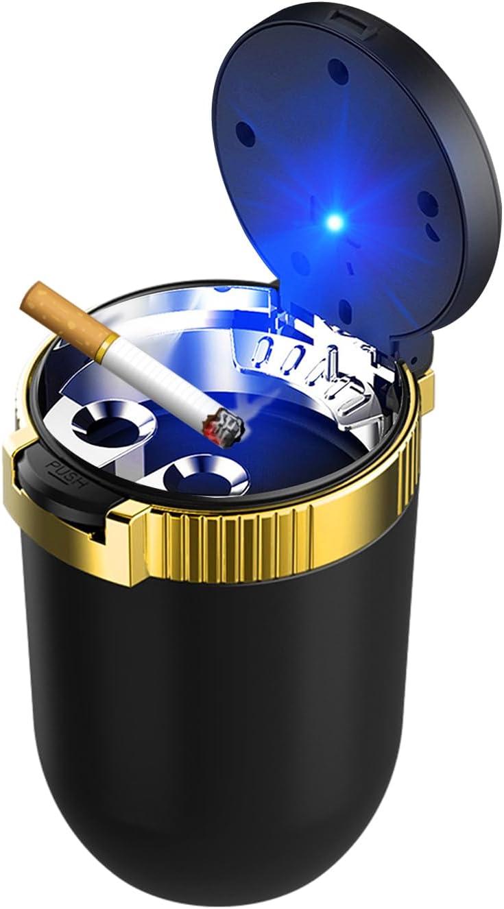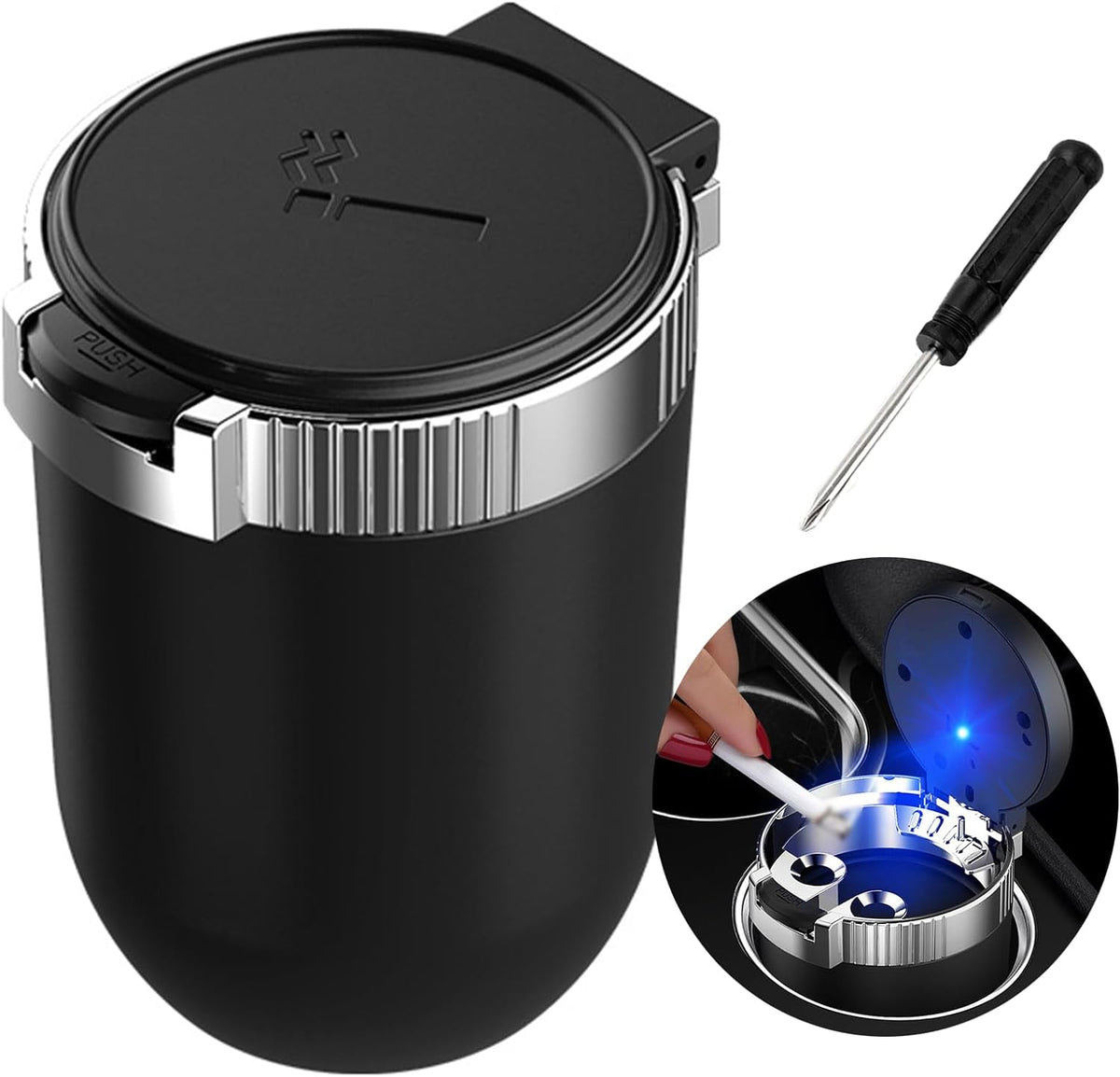 Practical LED Light Design : Mini car ashtray with blue LED light provides visibility at night, easy to find the ashtray, prevents ash from flying to keep the car clean and tidy, prevents smoke from messing up to keep the air fresh.
