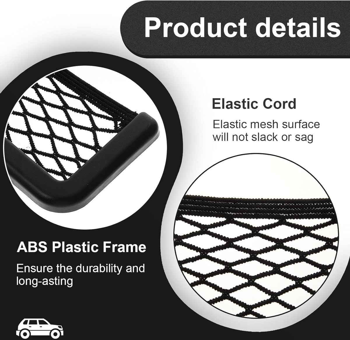 Durable Material: Car net storage bag made of ABS plastic and elastic nylon, strong and durable, not easy to crack...