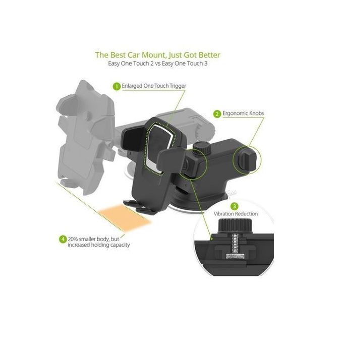 EASY ONE TOUCH MECHANISM: Press the locking side arms with a quick one-handed motion, and place your phone against the trigger button. The mount’s arms will close automatically, holding your device securely while you drive. Mount or remove your phone in seconds with the patented Easy One Touch Mechanism.